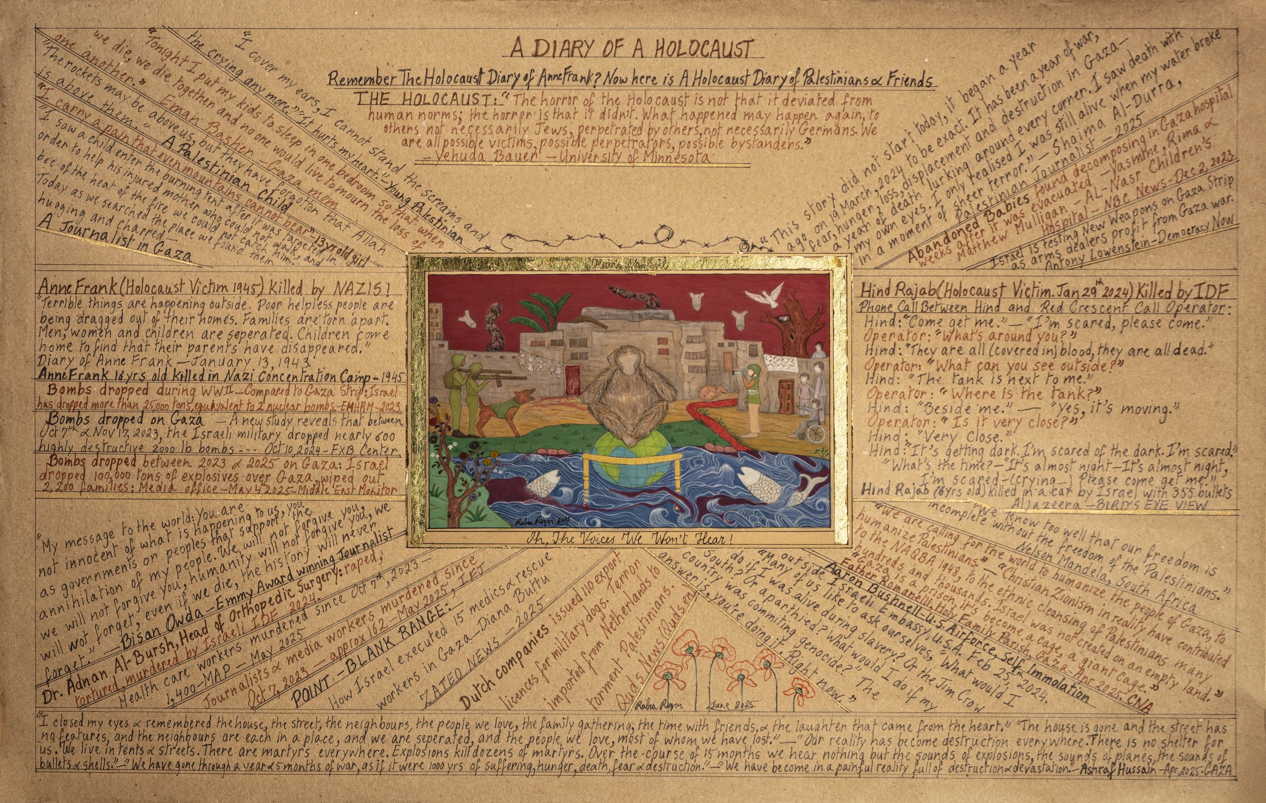 Rabia Rizvi completed her BFA from the National College of Arts, Pakistan, and received Honors in her thesis work. Working in the traditional Persian, and 16th-century Mughal miniature style, Rabia creates contemporary works that explore current socio-political affairs. She uses mark-making, layering, text and symbolic images.